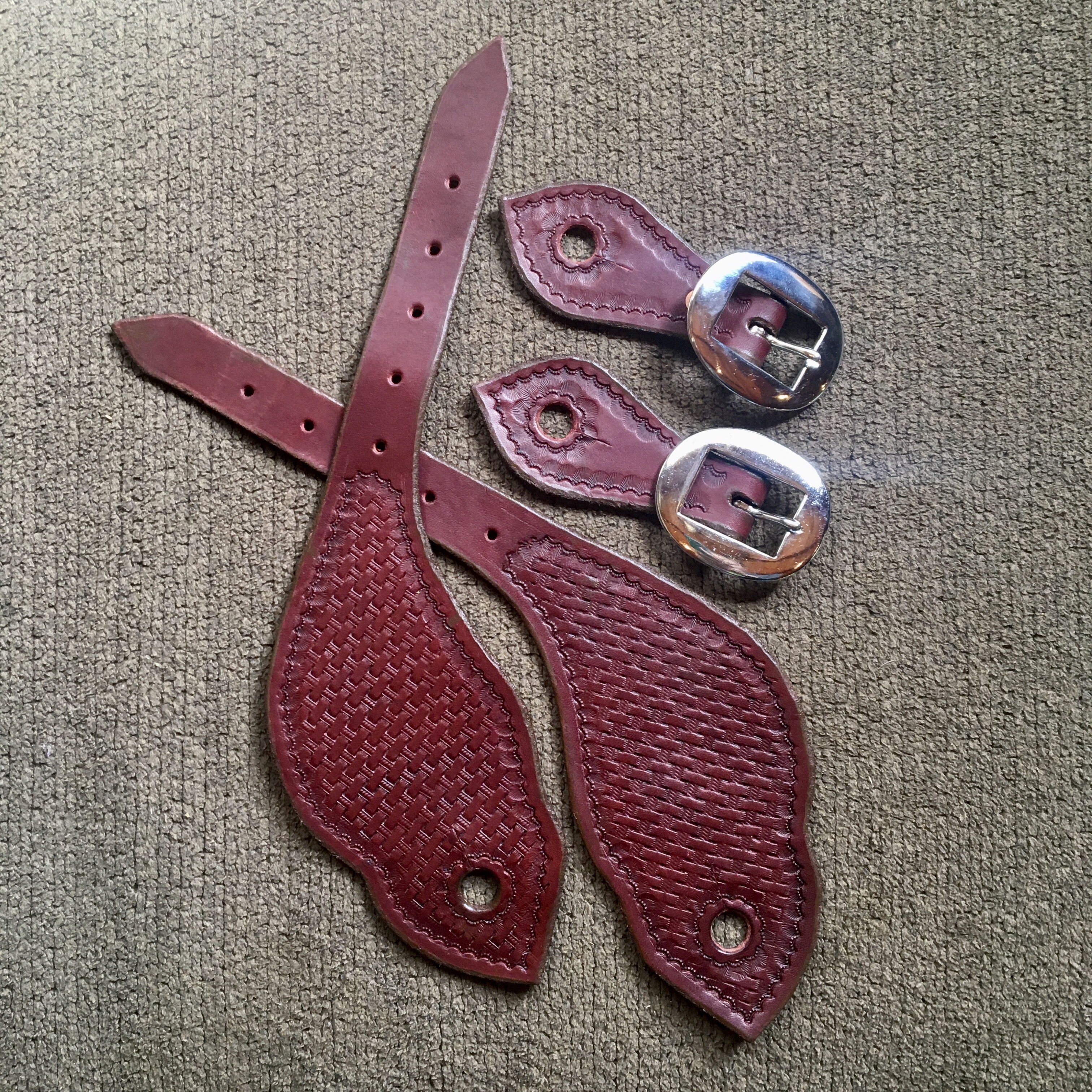Custom tack and saddle repair. Anything from chaps to saddle strings, to a brand new collar for your dog. Check out our store in the menu for in stock items. Custom work and repairs are $50/hr. shop rate, plus material.